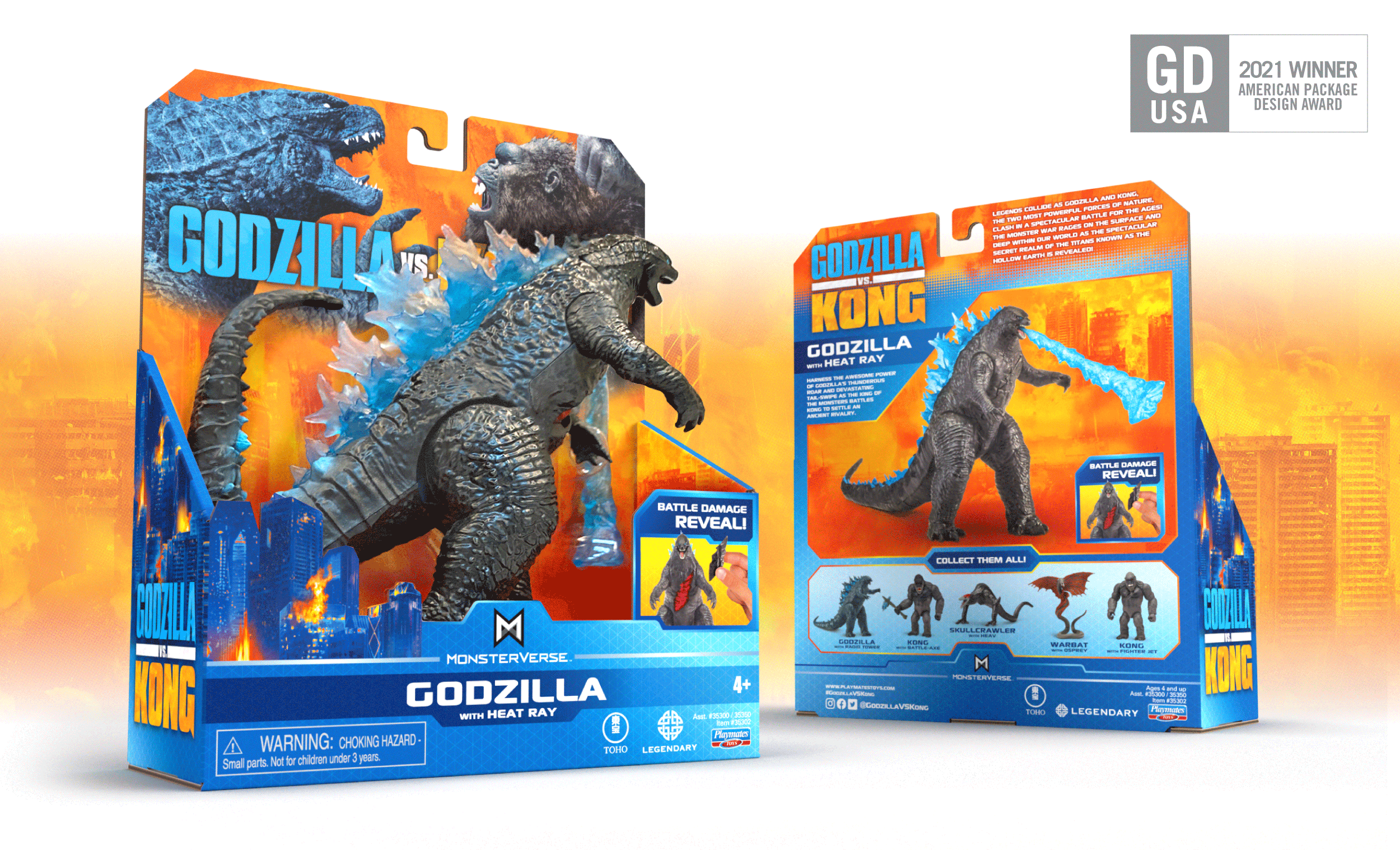 Godzilla vs. Kong pits the fierce franchise movie monsters against each other to determine who will reign over the MonsterVerse. In that same spirit, Playmates Toys challenged McHale Design to develop a packaging system emphasizing the enormous scale and over-the-top action of the epic battle. We hopped into the ring and defined branding and packaging design worthy of the legendary pair, resulting in a GDUSA American Package Design Award.
