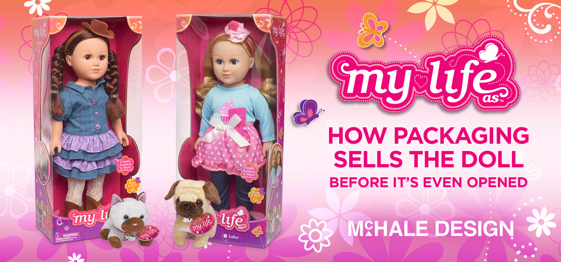 When private label brand, My Life As relaunched its 18″ doll line aimed at modern girls with bold personalities and diverse stories, they faced stiff competition from legacy brands. We stepped in to design branding and packaging that didn’t just hold the doll—it framed her identity and showcased her story, repositioning the brand as boutique, collectible and aspirational. Custom designed callouts highlighted outfits and accessories, playful, trendy graphic elements introduced each personality, and intentionally stylized photography teased the adventures waiting inside.