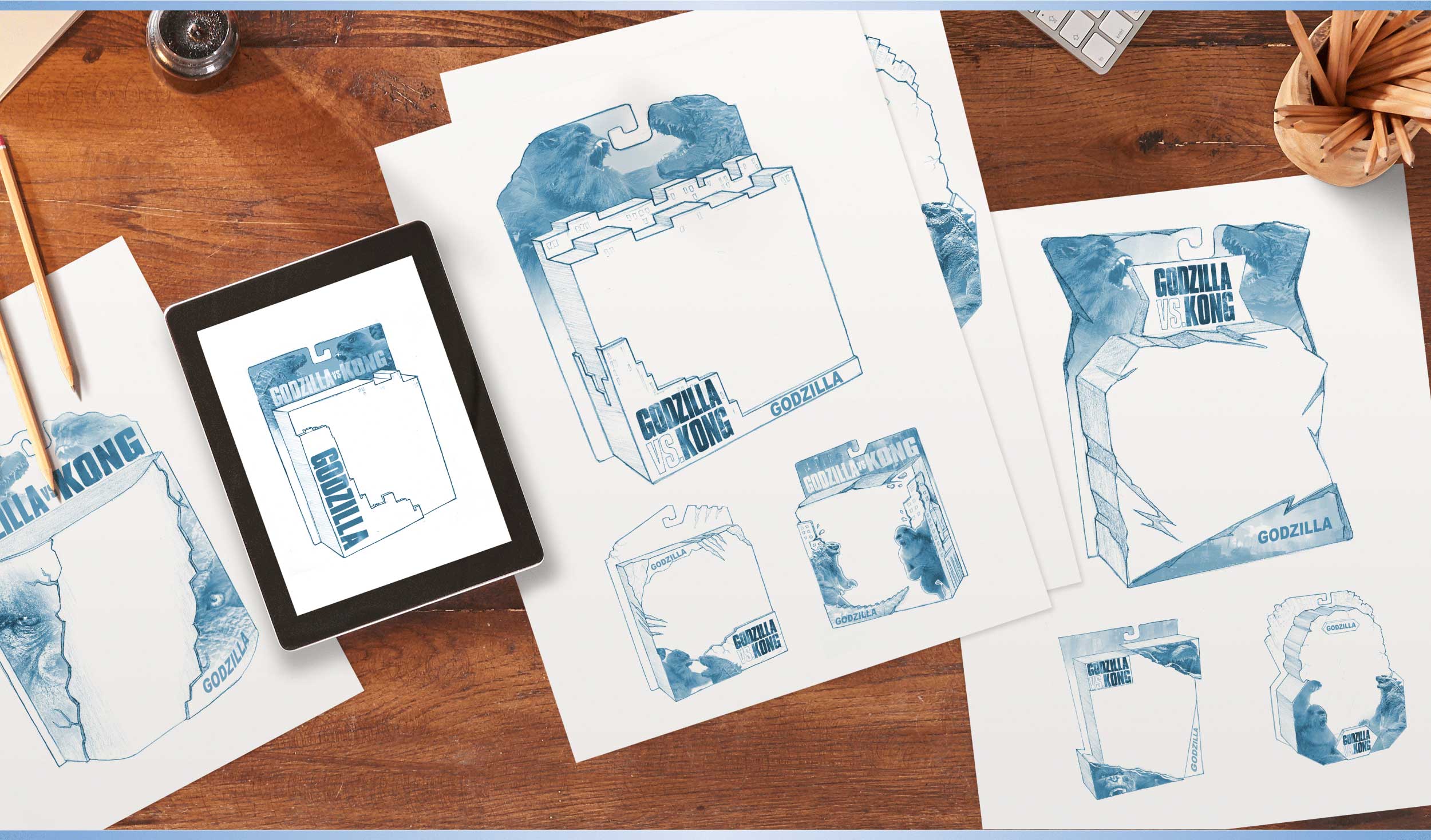 Godzilla vs. Kong pits the fierce franchise movie monsters against each other to determine who will reign over the MonsterVerse. In that same spirit, Playmates Toys challenged McHale Design to develop a packaging system emphasizing the enormous scale and over-the-top action of the epic battle. We hopped into the ring and defined branding and packaging design worthy of the legendary pair, resulting in a GDUSA American Package Design Award.