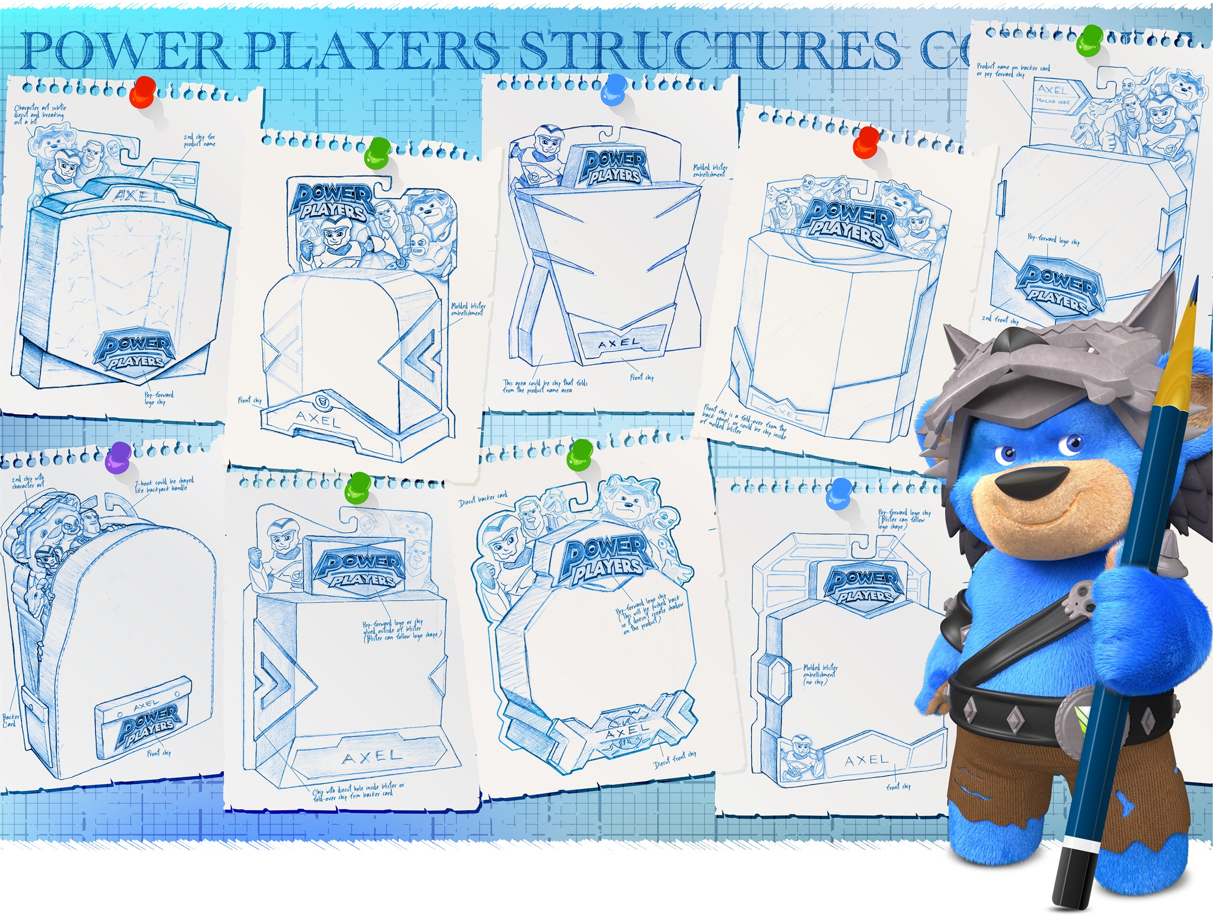 Seen on Cartoon Network, Boomerang and Netflix, Power Players is a CGI animated series following the adventures of Axel and his toy friends as they battle against the villain Madcap. With a wealth of source material for action figures and accessories, master toy licensee Playmates Toys approached McHale Design with the challenge of defining the brand, fleshing out the logo and creating a punchy line of packaging.